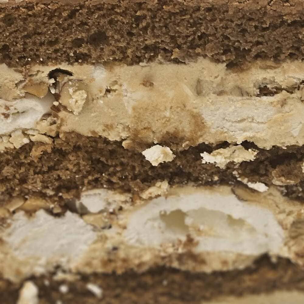Sudedamosios dalys: KIAUŠINIAI; KVIETINIAI miltai (550D); cukrus; kakava; augalinis aliejus; PIENAS; SVIESTAS (82%) ; virtas kondensuotas PIENAS; MIGDOLŲ RIEŠUTAI; kepimo milteliai, kava, citrinos rūgštis.